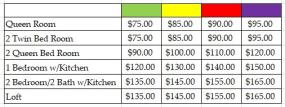 Our Kitchenette Suites include a living room, kitchen area, one or two bedrooms, and a private bath for each bedroom. Bedrooms have one queen size bed, and living rooms have sleeper sofas. Kitchens are fully equipped with stove, sink, refrigerator, microwave, coffee maker, toaster, and cooking and serving utensils. All kitchenettes have lake views, and all are non-smoking.
